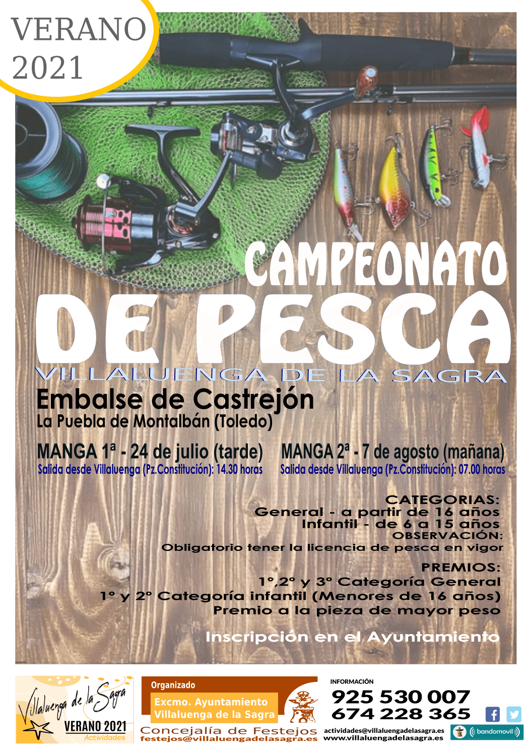 Se informa que se abre el periodo de inscripción para el CAMPEONATO DE PESCA VERANO 2021 que organiza la Concejalía de Festejos del Ayuntamiento de Villaluenga de la Sagra dentro de los actos previstos para los meses de julio y agosto (verano 2021).